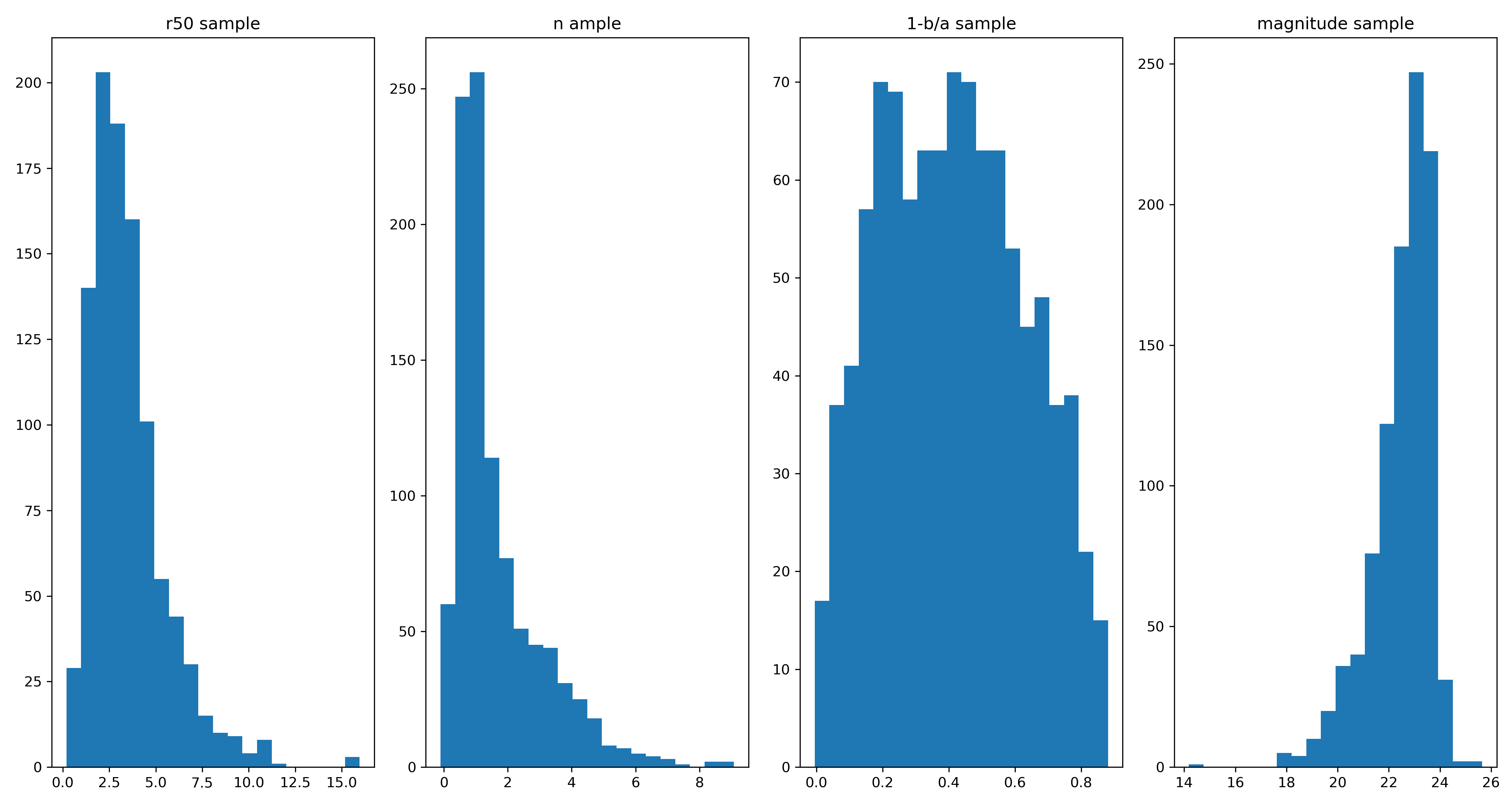 Ivana requested that instead of just choosing arbitrary parameters, I use the galaxies we already have and some of their morphological parameters to justify our model settings. I had to learn what the two functions Ivana linked did.